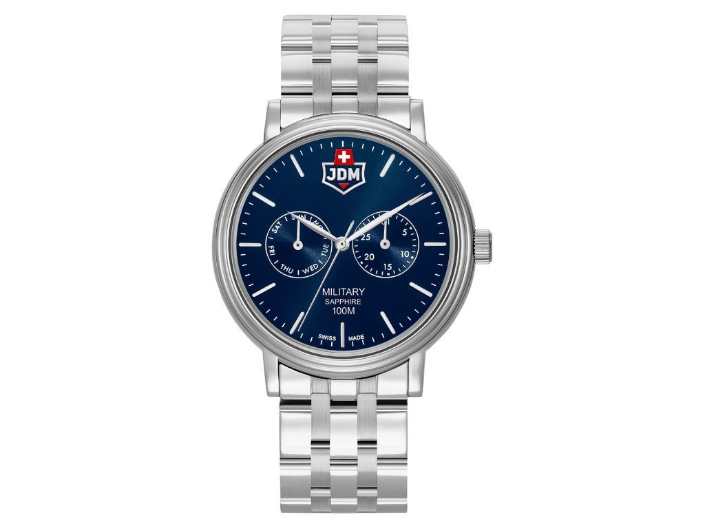 Celooceľové chronografy s výrazným modrým ciferníkom a oceľovým strojčekom. Špeciálne darčekové balenie s červeným švajčiarskym nožom. Okrem toho dostanete originálnu červenú vodotesnú 30-litrovú tašku JDM.