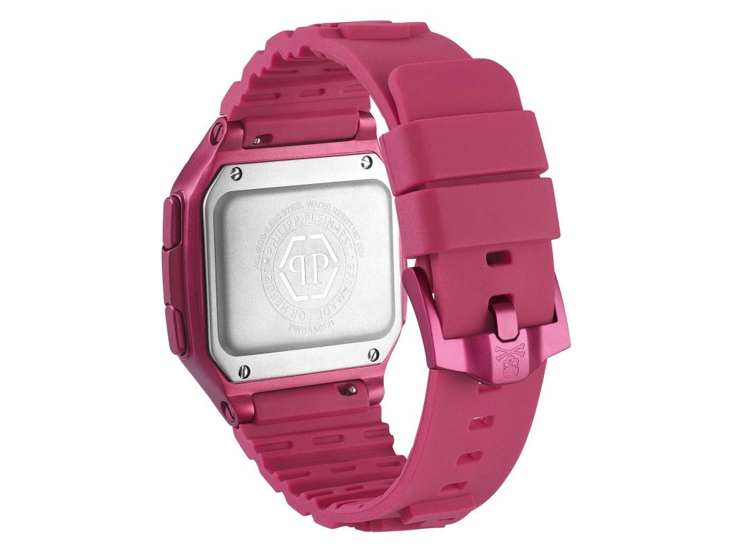 HODINKY PHILIPP PLEIN UNISEX PWHAA0121 (47MM). Typ mechanizmu: QUARTZ. Displej: DIGITÁLNY. Materiál puzdra: MATERIÁL PUZDRA: HLINÍK. Farba puzdra: FARBA PUZDRA: RUŽOVÁ. Materiál náramku: MATERIÁL NÁRAMKU: SILIKÓN. Farba náramku: FARBA NÁRAMKU: RUŽOVÁ. Farba ciferníka: FARBA CIFERNÍKA: ŠEDÁ. Typ skla: SKLÍČKO: MINERÁLNE. Kľučka: BUCKLE. Priemer ciferníka: dĹŽKA CIFERNÍKA: 47 MM. Ponorný: 5ATM