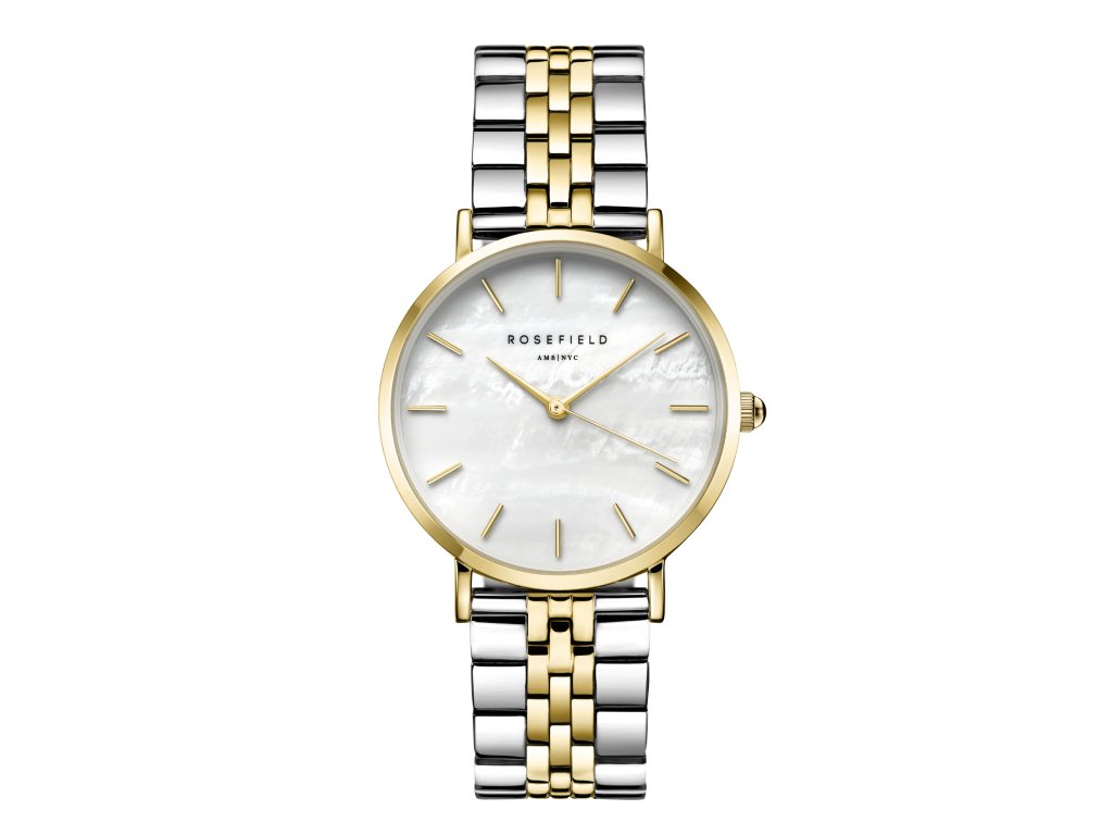 Dámske elegantné hodinky v zlatej farbe s perleťovým ciferníkom na milánskom strojčeku
