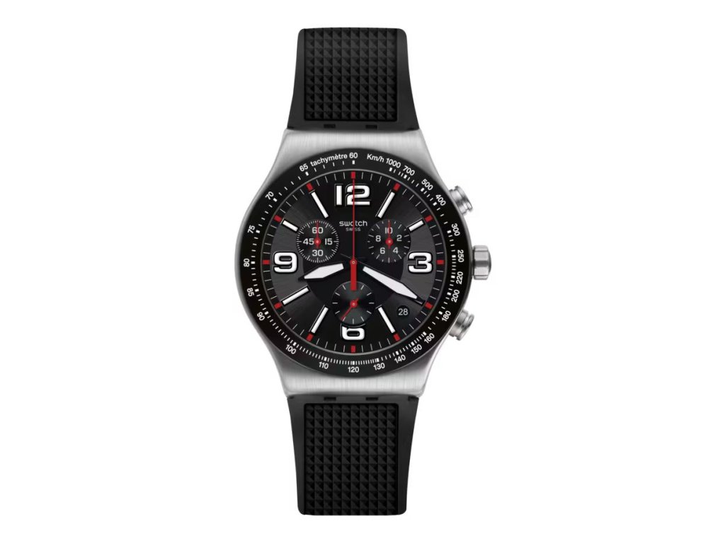 HODINKY SWATCH UNISEX YVS461 (43MM). Typ mechanizmu: QUARTZ. Displej: HODINKY: ANALÓGOVÉ. Materiál puzdra: MATERIÁL: NEHRDZAVEJÚCA OCEĽ. Farba puzdra: FARBA PUZDRA: ŠEDÁ. Materiál náramku: MATERIÁL NÁRAMKU: PLAST. Farba náramku: FARBA NÁRAMKU: ČIERNA. Farba ciferníka: ČIERNA. Typ skla: MINERÁLNE. Kľučka: BUCKLE. Priemer ciferníka: dĹŽKA CIFERNÍKA: 43MM. Ponorný: hĹBKA: 3ATM