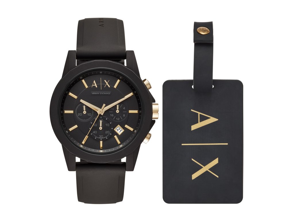 Tieto hodinky Outerbanks s čierno-zlatým kontrastom a remienkom na batožinu Armani Exhange sú súpravou doplnkov na doladenie vášho štýlu doma A na cestách.