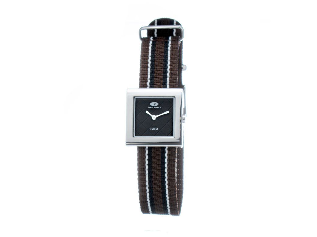HODINKY TIME FORCE WOMAN TF2649L011 (25MM). Typ mechanizmu: QUARTZ. Displej: HODINKY: ANALÓGOVÉ. Materiál puzdra: MATERIÁL: NEHRDZAVEJÚCA OCEĽ. Farba puzdra: STRIEBORNÁ: FARBA PUZDRA: STRIEBORNÁ. Materiál náramku: MATERIÁL NÁRAMKU: TKANINA. Farba náramku: FARBA NÁRAMKU: HNEDÁ. Farba ciferníka: ČIERNA. Typ skla: SKLÍČKO: MINERÁLNE. Uzáver: BUCKLE. Priemer ciferníka: dĹŽKA CIFERNÍKA: 25 MM. Ponorný: NE