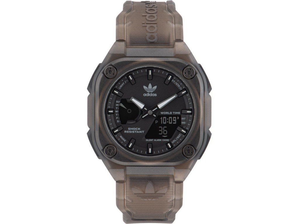 HODINKY ADIDAS MAN AOST23059 (45MM). Typ mechanizmu: QUARTZ. Displej: HODINKY: ANALÓGOVÉ/DIGITÁLNE. Materiál puzdra: MATERIÁL PUZDRA: RESIN. Farba puzdra: FARBA PUZDRA: HNEDÁ. Materiál náramku: MATERIÁL NÁRAMKU: SILIKÓN. Farba náramku: FARBA NÁRAMKU: HNEDÁ. Farba ciferníka: ČIERNA. Typ skla: TYP SKLA: MINERÁLNE. Uzáver: BUCKLE. Priemer ciferníka: dĹŽKA CIFERNÍKA: 45MM. Ponorný: 10ATM