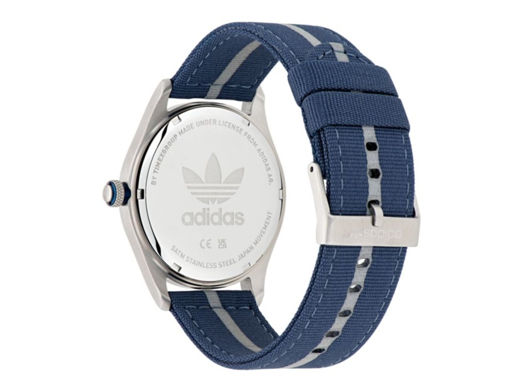 HODINKY ADIDAS MAN AOSY23041 (42MM). Typ mechanizmu: QUARTZ. Displej: HODINKY: ANALÓGOVÉ. Materiál puzdra: MATERIÁL: NEHRDZAVEJÚCA OCEĽ. Farba puzdra: FARBA PUZDRA: ŠEDÁ. Materiál náramku: MATERIÁL NÁRAMKU: TKANINA. Farba náramku: FARBA NÁRAMKU: MODRÁ. Farba ciferníka: MODRÁ. Typ skla: SKLÍČKO: MINERÁLNE. Uzáver: BUCKLE. Priemer ciferníka: dĹŽKA CIFERNÍKA: 42MM. Ponoriteľnosť: 5ATM