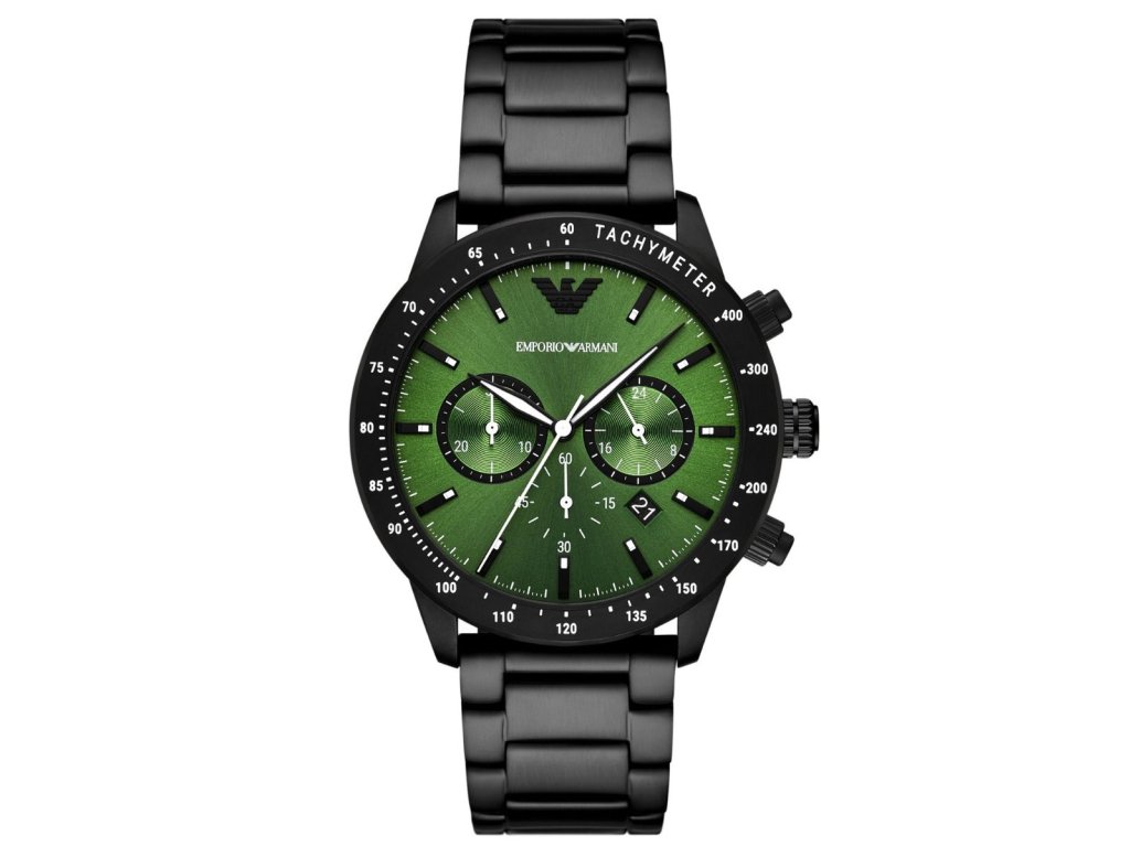 HODINKY ARMANI MAN AR11472 (43 MM). Typ mechanizmu: QUARTZ. Displej: HODINKY: ANALOGICKÉ. Materiál puzdra: MATERIÁL: NEHRDZAVEJÚCA OCEĽ. Farba puzdra: FARBA PUZDRA: ČIERNA. Materiál náramku: MATERIÁL NÁRAMKU: NEHRDZAVEJÚCA OCEĽ. Farba náramku: FARBA NÁRAMKU: ČIERNA. Farba ciferníka: FARBA CIFERNÍKA: ZELENÁ. Typ skla: SKLÍČKO: MINERÁLNE. Sklo: BUTTERFLY. Priemer ciferníka: 43 MM. Ponoriteľnosť: 10 ATM