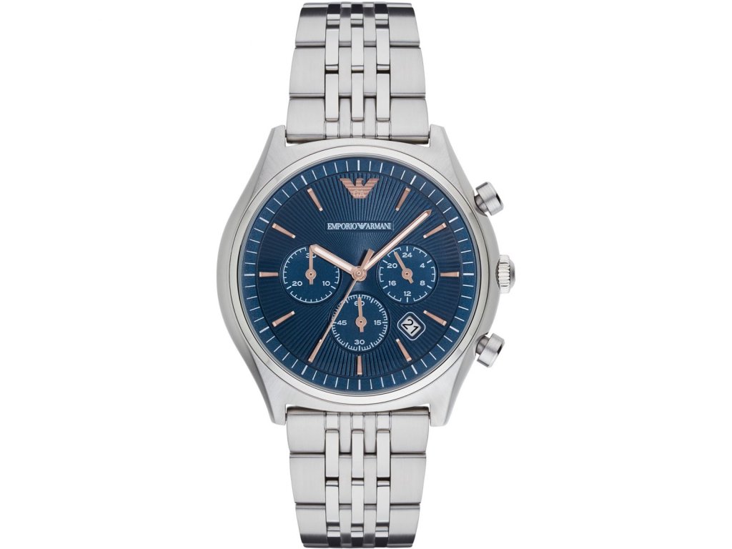 HODINKY ARMANI MAN AR1974 (43MM). Typ mechanizmu: QUARTZ. Displej: TYP: ANALÓGOVÝ. Materiál puzdra: MATERIÁL: NEHRDZAVEJÚCA OCEĽ. Farba puzdra: STRIEBORNÁ: FARBA PUZDRA: STRIEBORNÁ. Materiál náramku: MATERIÁL NÁRAMKU: OCEĽ. Farba náramku: STRIEBORNÁ FARBA NÁRAMKU. Farba ciferníka: MODRÁ. Typ skla: SKLÍČKO: MINERÁLNE. Clousure: TLAKOVÁ. Priemer ciferníka: dĹŽKA CIFERNÍKA: 43 MM. Ponorný: 5ATM