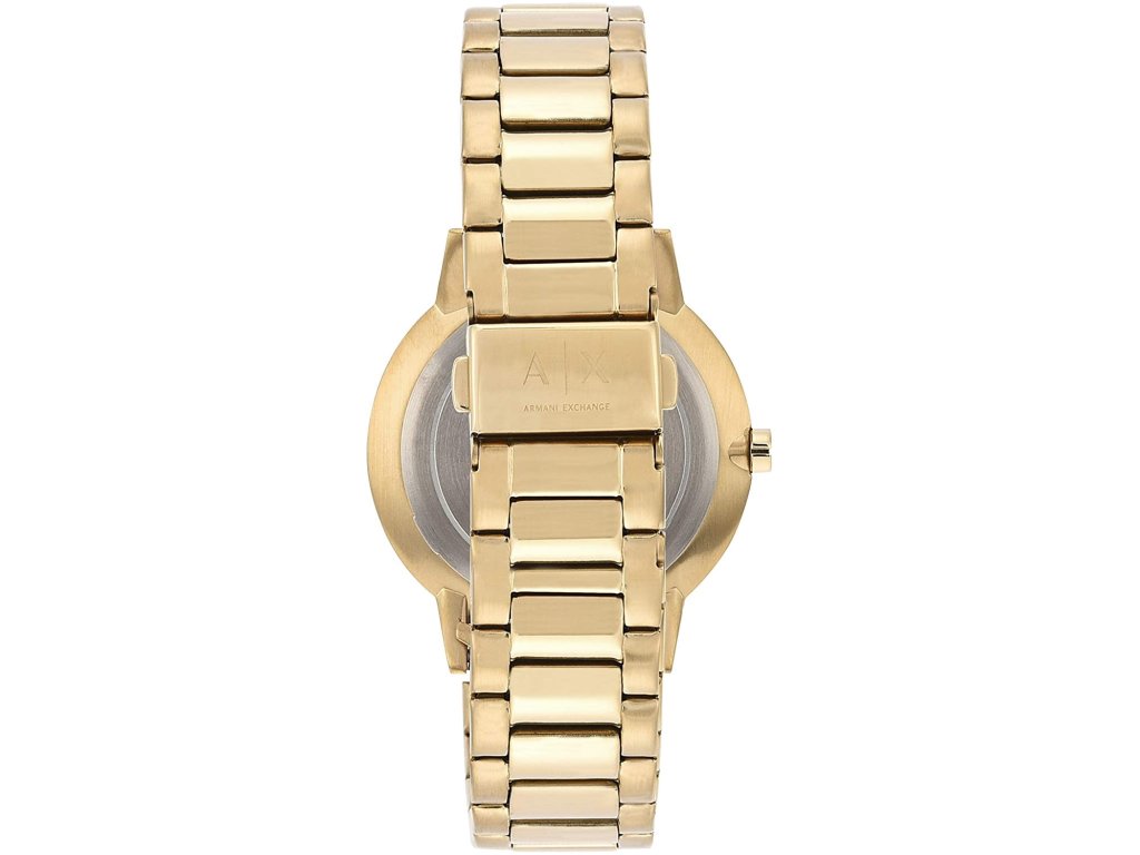 HODINKY ARMANI EXCHANGE MAN AX2707 (42 MM). Typ mechanizmu: QUARTZ. Displej: HODINKY: ANALOGICKÉ. Materiál puzdra: MATERIÁL: NEHRDZAVEJÚCA OCEĽ. Farba puzdra: FARBA: ZLATÁ. Materiál náramku: MATERIÁL NÁRAMKU: NEHRDZAVEJÚCA OCEĽ. Farba náramku: ZLATÁ. Farba ciferníka: ZLATÁ. Typ skla: MINERÁLNE. Clousure: Broker s dvojitým tlačidlom. Priemer ciferníka: 42 MM. Ponoriteľnosť: 5 ATM