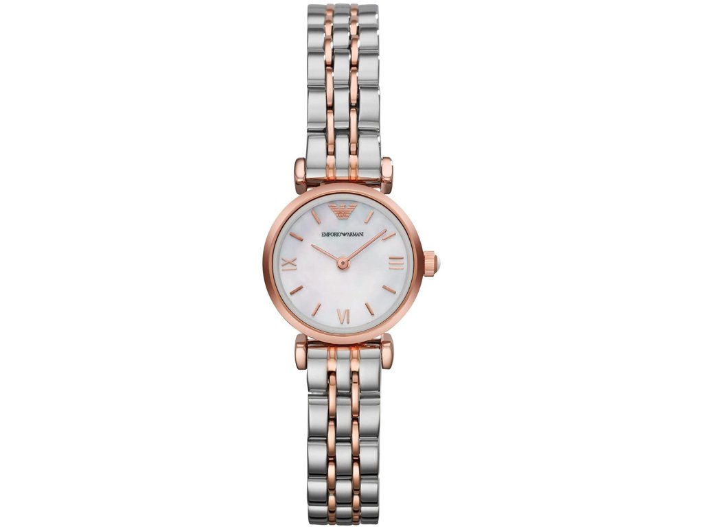 HODINKY ARMANI WOMAN AR1689 (32MM). Typ mechanizmu: QUARTZ. Displej: HODINKY: ANALÓGOVÉ. Materiál puzdra: MATERIÁL: NEHRDZAVEJÚCA OCEĽ. Farba puzdra: FARBA PUZDRA: RUŽOVÉ ZLATO. Materiál náramku: MATERIÁL NÁRAMKU: OCEĽ. Farba náramku: STRIEBORNÁ FARBA NÁRAMKU. Farba ciferníka: BIELA. Typ skla: SKLÍČKO: MINERÁLNE. Kľučka: BUCKLE. Priemer ciferníka: dĹŽKA CIFERNÍKA: 32 MM. Ponorný: 5ATM
