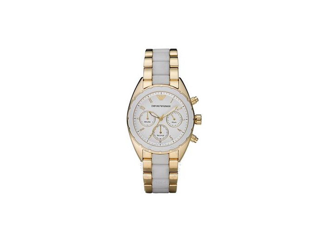 HODINKY ARMANI WOMAN AR5944 (38MM). Typ mechanizmu: QUARTZ. Displej: HODINKY: ANALÓGOVÉ. Materiál puzdra: MATERIÁL: NEHRDZAVEJÚCA OCEĽ. Farba puzdra: FARBA: ZLATÁ. Materiál náramku: MATERIÁL NÁRAMKU: NEHRDZAVEJÚCA OCEĽ. Farba náramku: ZLATÁ. Farba ciferníka: BIELA. Typ skla: SKLÍČKO: MINERÁLNE. Clousure: SKLENENÉ SKLO: FOLDING. Priemer ciferníka: dĹŽKA CIFERNÍKA: 38 MM. Ponoriteľnosť: 5 ATM