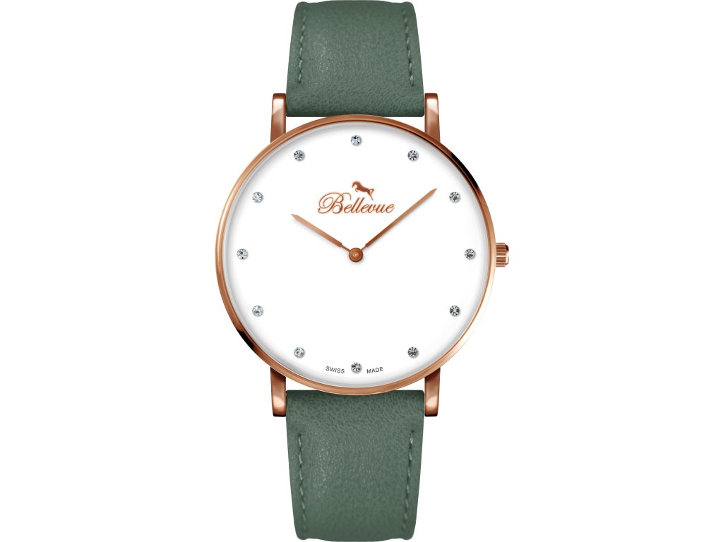 HODINKY BELLEVUE WOMAN B57 (40MM). Typ mechanizmu: QUARTZ. Displej: HODINKY: ANALÓGOVÉ. Materiál puzdra: MATERIÁL PUZDRA: KOV. Farba puzdra: FARBA PUZDRA: RUŽOVÁ. Materiál náramku: MATERIÁL: SYNTETICKÁ KOŽA. Farba náramku: FARBA NÁRAMKU: ZELENÁ. Farba ciferníka: BIELA. Typ skla: SKLÍČKO: MINERÁLNE. Kľučka: BUCKLE. Priemer ciferníka: dĹŽKA CIFERNÍKA: 40MM. Ponoriteľnosť: 5ATM