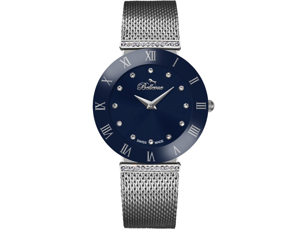 HODINKY BELLEVUE WOMAN F130 (26MM). Typ mechanizmu: QUARTZ. Displej: HODINKY: ANALÓGOVÉ. Materiál puzdra: MATERIÁL PUZDRA: KOV. Farba puzdra: FARBA: ŠEDÁ. Materiál náramku: MATERIÁL NÁRAMKU: KOV. Farba náramku: FARBA NÁRAMKU: ŠEDÁ. Farba ciferníka: MODRÁ. Typ skla: SKLÍČKO: MINERÁLNE. Clousure: BUTTERFLY. Priemer ciferníka: dĹŽKA CIFERNÍKA: 26 MM. Ponorný: hĹBKA: 3ATM