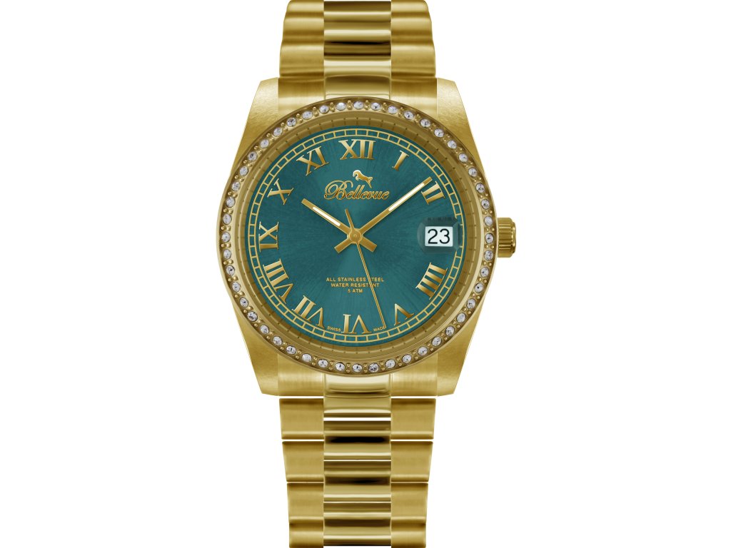HODINKY BELLEVUE WOMAN I16 (27MM). Typ mechanizmu: QUARTZ. Displej: DISPLEJ: ANALÓGOVÝ. Materiál puzdra: MATERIÁL: NEHRDZAVEJÚCA OCEĽ. Farba puzdra: FARBA: ŠEDÁ. Materiál náramku: MATERIÁL NÁRAMKU: NEHRDZAVEJÚCA OCEĽ. Farba náramku: FARBA NÁRAMKU: ZLATÁ. Farba ciferníka: MODRÁ. Typ skla: SKLÍČKO: MINERÁLNE. Clousure: BUTTERFLY. Priemer ciferníka: dĹŽKA CIFERNÍKA: 27 MM. Ponorný: 5ATM