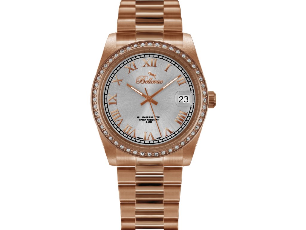 HODINKY BELLEVUE WOMAN I28 (28MM). Typ mechanizmu: QUARTZ. Displej: HODINKY: ANALÓGOVÉ. Materiál puzdra: MATERIÁL: NEHRDZAVEJÚCA OCEĽ. Farba puzdra: FARBA: RUŽOVÁ. Materiál náramku: MATERIÁL NÁRAMKU: NEHRDZAVEJÚCA OCEĽ. Farba náramku: FARBA NÁRAMKU: ROSE. Farba ciferníka: FARBA CIFERNÍKA: ŠEDÁ. Typ skla: FARBA SKLA: MINERÁLNE. Sklo: BUTTERFLY. Priemer ciferníka: pRIEMER HODINOVÉHO STROJČEKA: 28 MM. Ponoriteľnosť: 5ATM