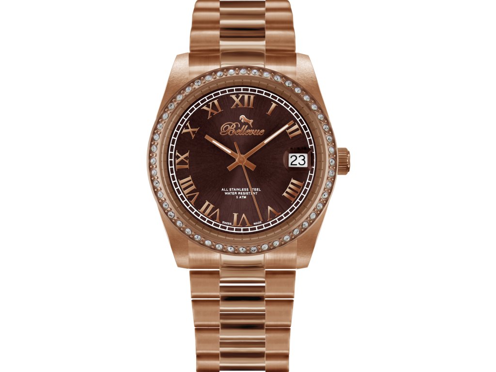 HODINKY BELLEVUE WOMAN I29 (36MM). Typ mechanizmu: QUARTZ. Displej: HODINKY: ANALÓGOVÉ. Materiál puzdra: MATERIÁL: NEHRDZAVEJÚCA OCEĽ. Farba puzdra: FARBA: RUŽOVÁ. Materiál náramku: MATERIÁL NÁRAMKU: NEHRDZAVEJÚCA OCEĽ. Farba náramku: FARBA NÁRAMKU: ROSE. Farba ciferníka: HNEDÁ. Typ skla: FARBA: MINERÁLNE. Clousure: BUTTERFLY. Priemer ciferníka: dĹŽKA CIFERNÍKA: 36 MM. Ponoriteľnosť: 5ATM