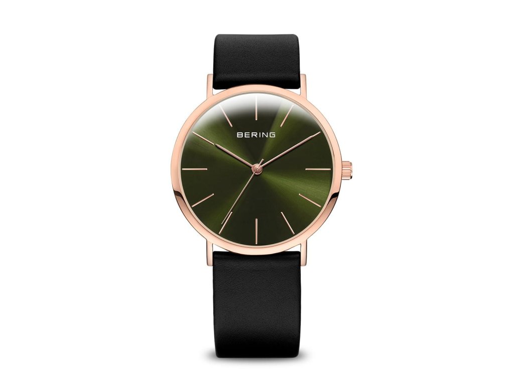 HODINKY BERING MAN 13436-469 (36MM). Typ mechanizmu: QUARTZ. Displej: HODINKY: ANALÓGOVÉ. Materiál puzdra: MATERIÁL: NEHRDZAVEJÚCA OCEĽ. Farba puzdra: FARBA: ZLATÁ. Materiál náramku: MATERIÁL NÁRAMKU: KOŽA. Farba náramku: FARBA NÁRAMKU: ČIERNA. Farba ciferníka: FARBA CIFERNÍKA: ZELENÁ. Typ skla: TYP SKLA: SAPPHIRE. Kľučka: BUCKLE. Priemer ciferníka: dĹŽKA CIFERNÍKA: 36 MM. Ponorný: hĹBKA: 3ATM