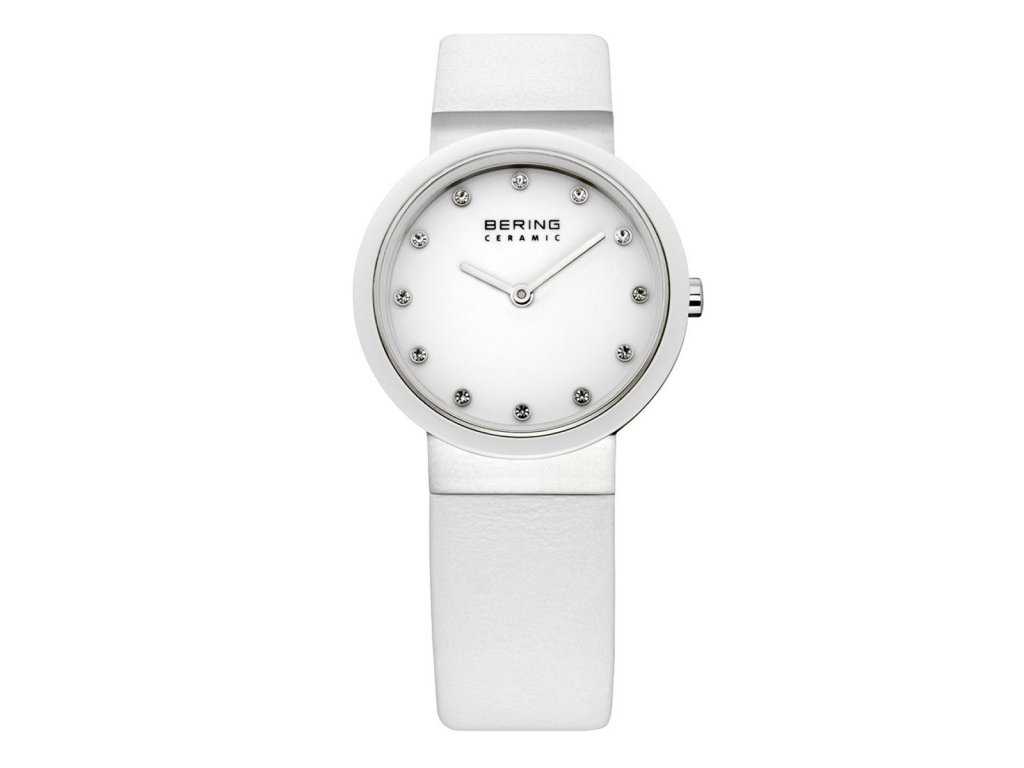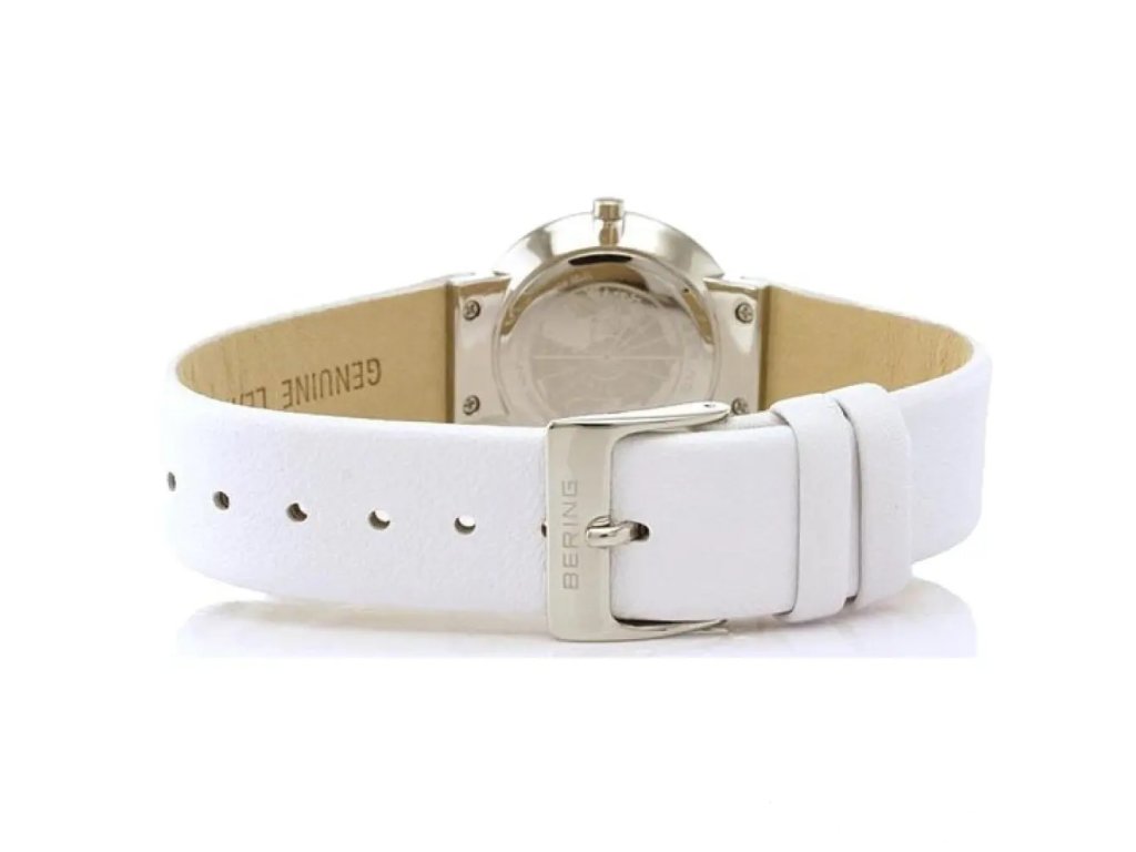 HODINKY BERING WOMAN 10729-854 (27MM). Typ mechanizmu: QUARTZ. Displej: HODINKY: ANALÓGOVÉ. Materiál puzdra: MATERIÁL: NEHRDZAVEJÚCA OCEĽ. Farba puzdra: STRIEBORNÁ: FARBA PUZDRA: STRIEBORNÁ. Materiál náramku: MATERIÁL NÁRAMKU: KOŽUŠINA. Farba náramku: FARBA NÁRAMKU: BIELA. Farba ciferníka: BIELA. Typ skla: SKLÍČKO: SAPPHIRE. Kľučka: BUCKLE. Priemer ciferníka: dĹŽKA CIFERNÍKA: 27 MM. Ponorný: 5ATM