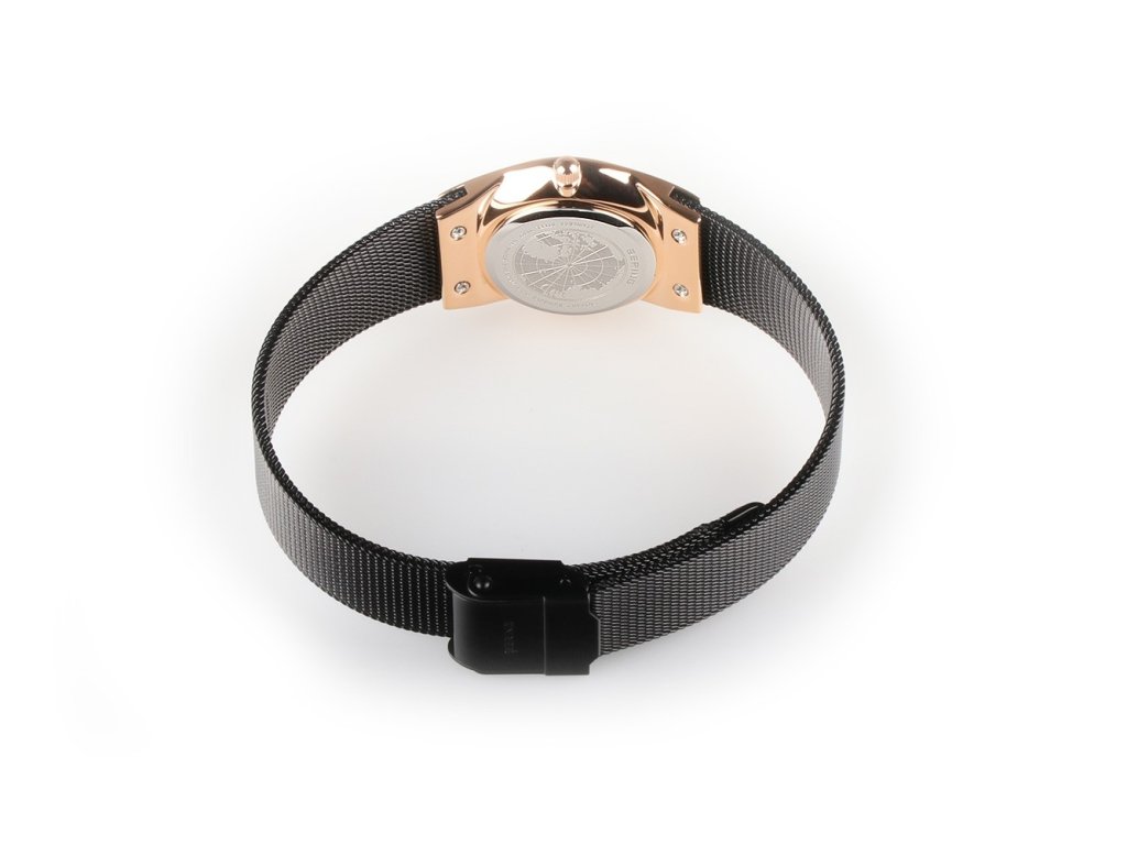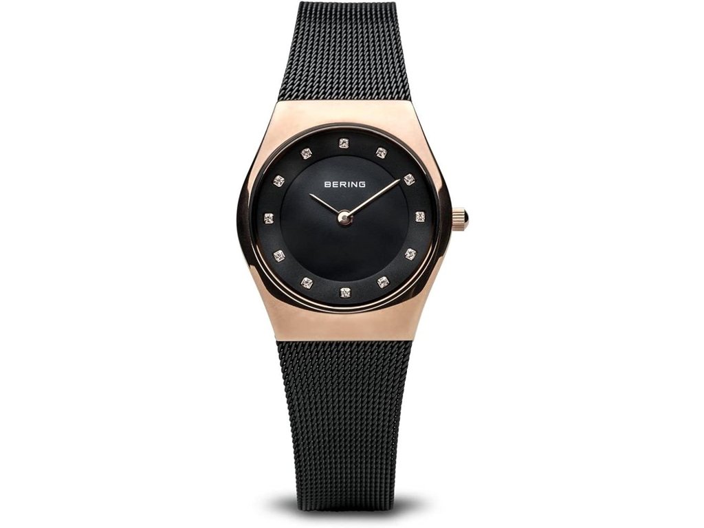 HODINKY BERING WOMAN 11927-166 (27MM). Typ mechanizmu: QUARTZ. Displej: HODINKY: ANALÓGOVÉ. Materiál puzdra: MATERIÁL: NEHRDZAVEJÚCA OCEĽ. Farba puzdra: FARBA PUZDRA: RUŽOVÉ ZLATO. Materiál náramku: MATERIÁL NÁRAMKU: OCEĽ. Farba náramku: FARBA NÁRAMKU: ČIERNA. Farba ciferníka: ČIERNA. Typ skla: TYP SKLA: SAPPHIRE. Clousure: TLAKOVÁ NÁDOBA: PRESSURE. Priemer ciferníka: dĹŽKA CIFERNÍKA: 27 MM. Ponorný: 5ATM