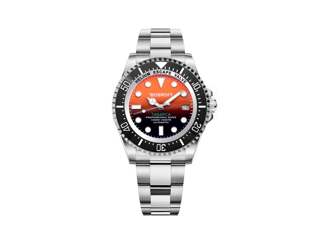 Hodinky BOBROFF MAN BF0004BNE (42 mm). Typ mechanizmu: TYP: AUTOMATICKÝ. Displej: DISPLEJ: ANALÓGOVÝ. Materiál puzdra: MATERIÁL: NEREZOVÁ OCEĽ. Farba puzdra: STRIEBORNÁ: FARBA PUZDRA: STRIEBORNÁ. Materiál náramku: MATERIÁL NÁRAMKU: NEHRDZAVEJÚCA OCEĽ. Farba náramku: FARBA NÁRAMKU: STRIEBORNÁ. Farba ciferníka: FARBA CIFERNÍKA: ORANŽOVÁ. Typ skla: TYP SKLA: SAPPHIRE. Sklo: TLAK. Priemer ciferníka: dĺžka ciferníka: 42 mm. Ponorný: 100ATM