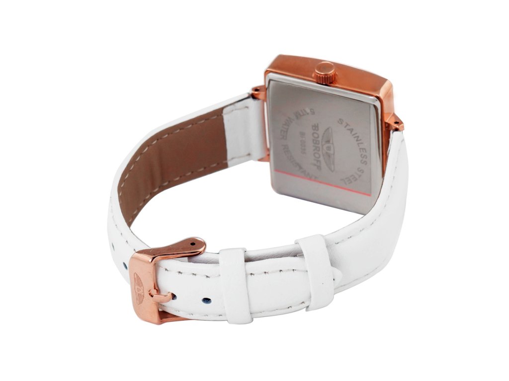 HODINKY BOBROFF WOMAN BF0035-S013 (36MM). Typ mechanizmu: QUARTZ. Displej: HODINKY: ANALÓGOVÉ. Materiál puzdra: MATERIÁL PUZDRA: OCEĽ. Farba puzdra: FARBA PUZDRA: BRONZOVÁ. Materiál náramku: MATERIÁL NÁRAMKU: KOŽA. Farba náramku: FARBA NÁRAMKU: BIELA. Farba ciferníka: FAREBNÝ ČÍSELNÍK. Typ skla: MINERÁLNE. Sklo: BUTTERFLY. Priemer ciferníka: dĹŽKA CIFERNÍKA: 36 MM. Ponoriteľnosť: 5ATM