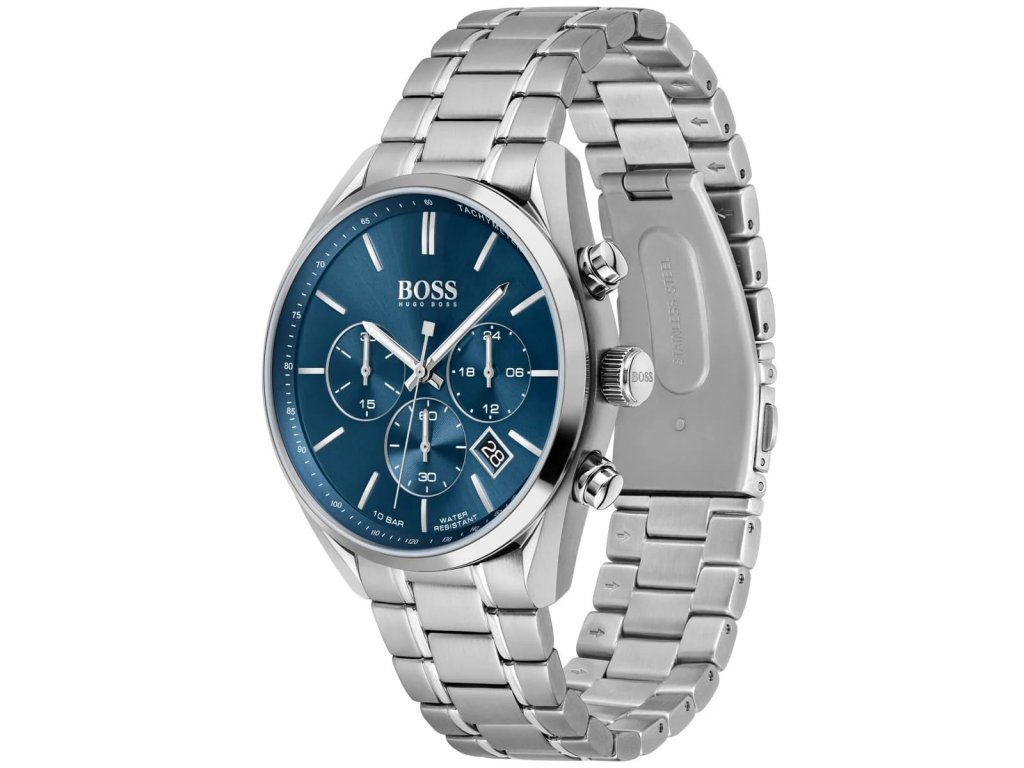HODINKY BOSS MAN 1513818 (44MM). Typ mechanizmu: QUARTZ. Displej: HODINKY: ANALÓGOVÉ. Materiál puzdra: MATERIÁL: NEHRDZAVEJÚCA OCEĽ. Farba puzdra: FARBA PUZDRA: ŠEDÁ. Materiál náramku: MATERIÁL NÁRAMKU: NEHRDZAVEJÚCA OCEĽ. Farba náramku: FARBA NÁRAMKU: ŠEDÁ. Farba ciferníka: MODRÁ. Typ skla: SKLÍČKO: MINERÁLNE. Kľučka: BUTTON. Priemer ciferníka: dĹŽKA CIFERNÍKA: 44MM. Ponorný: 10ATM
