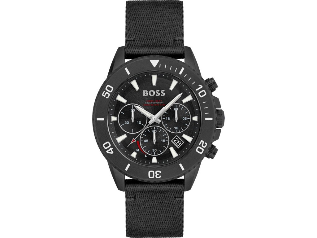 HODINKY BOSS MAN 1513918 (41MM). Typ mechanizmu: QUARTZ. Displej: HODINKY: ANALÓGOVÉ. Materiál puzdra: MATERIÁL PUZDRA: ŽIVICA. Farba puzdra: FARBA PUZDRA: ČIERNA. Materiál náramku: MATERIÁL: NYLON. Farba náramku: FARBA NÁRAMKU: ČIERNA. Farba ciferníka: ČIERNA. Typ skla: MINERÁLNE. Kľučka: BUCKLE. Priemer ciferníka: pRIEMER CIFERNÍKA: 41MM. Ponorný: 5ATM