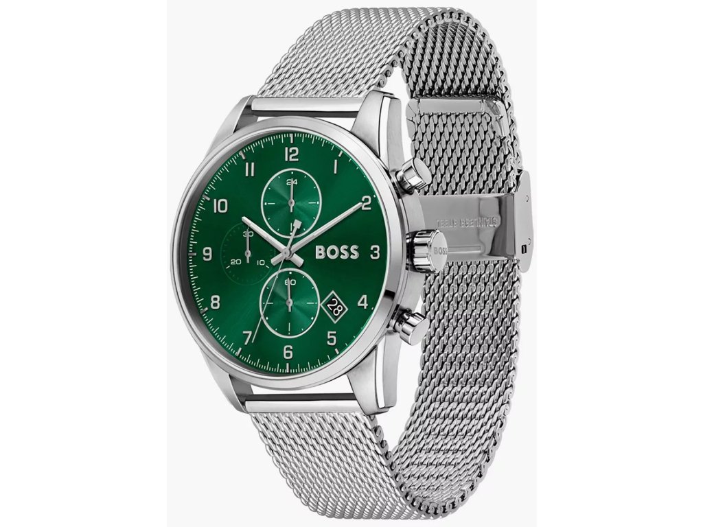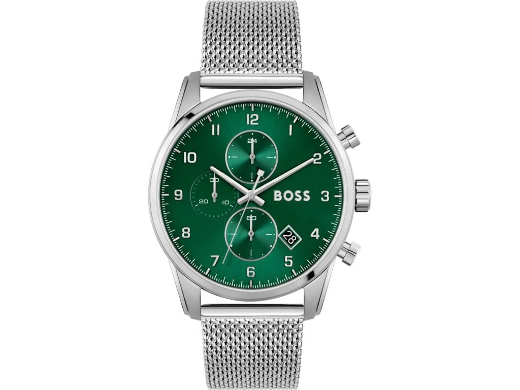 HODINKY BOSS MAN 1513938 (44MM). Typ mechanizmu: QUARTZ. Displej: HODINKY: ANALÓGOVÉ. Materiál puzdra: MATERIÁL: NEHRDZAVEJÚCA OCEĽ. Farba puzdra: STRIEBORNÁ: FARBA PUZDRA: STRIEBORNÁ. Materiál náramku: MATERIÁL NÁRAMKU: NEHRDZAVEJÚCA OCEĽ. Farba náramku: FARBA NÁRAMKU: STRIEBORNÁ. Farba ciferníka: FARBA CIFERNÍKA: ZELENÁ. Typ skla: SKLÍČKO: MINERÁLNE. Sklo: TLAK. Priemer ciferníka: dĹŽKA CIFERNÍKA: 44MM. Ponorný: 50M