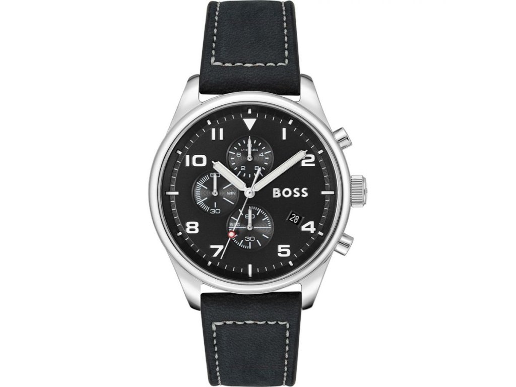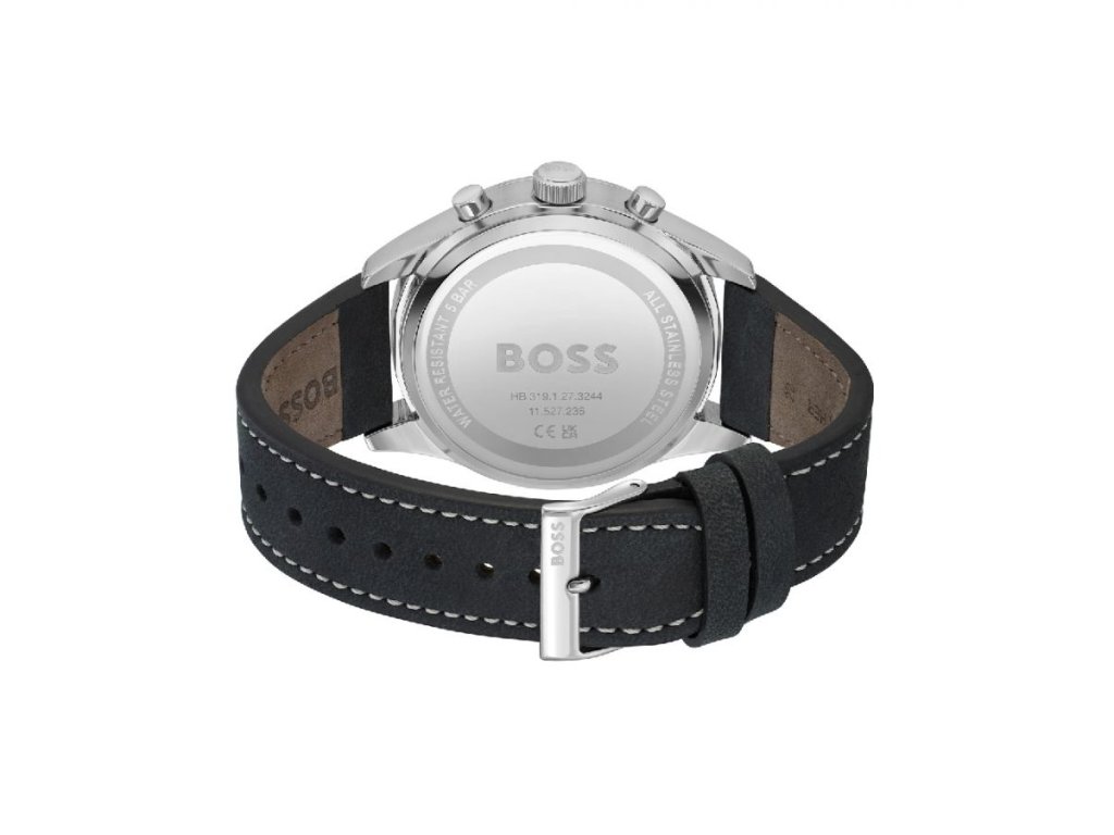 HODINKY BOSS MAN 1513987 (44MM). Typ mechanizmu: QUARTZ. Displej: HODINKY: ANALOGICKÉ. Materiál puzdra: MATERIÁL: NEHRDZAVEJÚCA OCEĽ. Farba puzdra: FARBA PUZDRA: ŠEDÁ. Materiál náramku: MATERIÁL NÁRAMKU: KOŽA. Farba náramku: FARBA NÁRAMKU: ČIERNA. Farba ciferníka: ČIERNA. Typ skla: SKLÍČKO: MINERÁLNE. Kľučka: BUCKLE. Priemer ciferníka: dĹŽKA CIFERNÍKA: 44MM. Ponoriteľnosť: 5ATM
