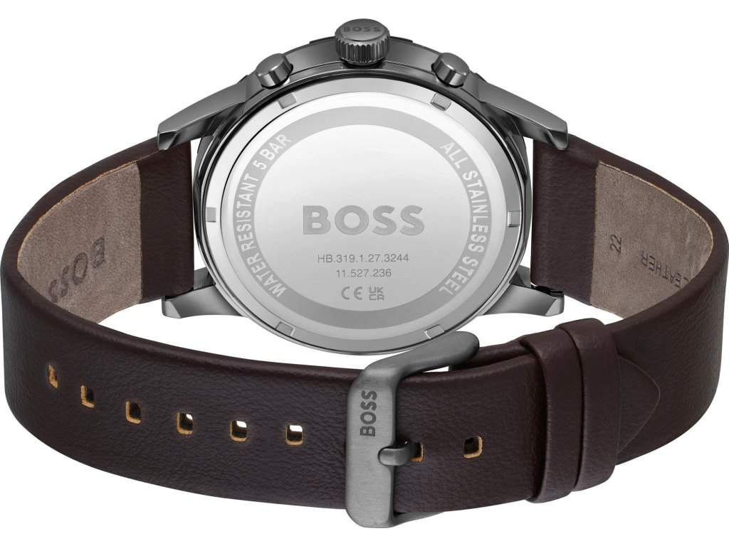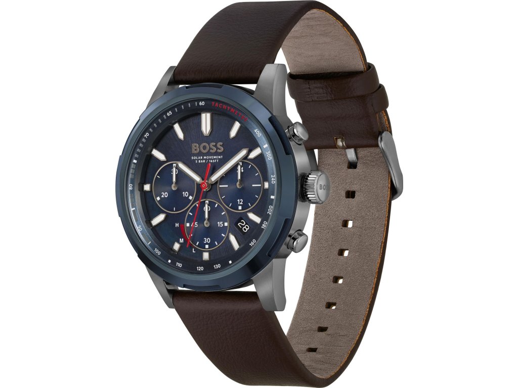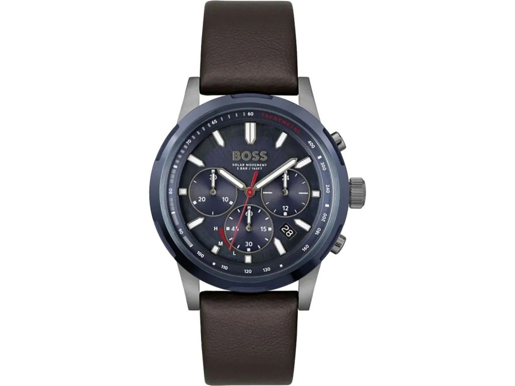 HODINKY BOSS MAN 1514030 (10 MM). Typ mechanizmu: QUARTZ. Displej: HODINKY: ANALOGICKÉ. Materiál puzdra: MATERIÁL: NEHRDZAVEJÚCA OCEĽ. Farba puzdra: FARBA PUZDRA: ŠEDÁ. Materiál náramku: MATERIÁL NÁRAMKU: KOŽA. Farba náramku: FARBA NÁRAMKU: HNEDÁ. Farba ciferníka: MODRÁ. Typ skla: SKLÍČKO: MINERÁLNE. Uzáver: BUCKLE. Priemer ciferníka: dĹŽKA CIFERNÍKA: 10 MM. Ponorný: 5ATM