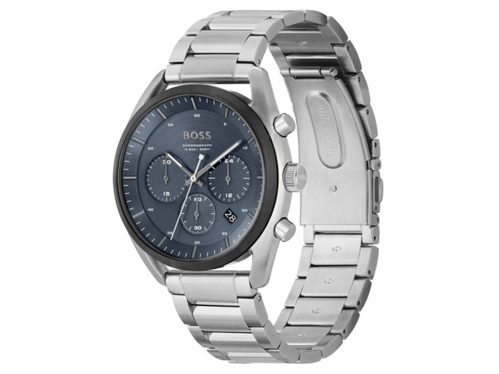 HODINKY BOSS MAN 1514093 (44MM). Typ mechanizmu: QUARTZ. Displej: HODINKY: ANALÓGOVÉ. Materiál puzdra: MATERIÁL: NEHRDZAVEJÚCA OCEĽ. Farba puzdra: FARBA PUZDRA: ŠEDÁ. Materiál náramku: MATERIÁL NÁRAMKU: NEHRDZAVEJÚCA OCEĽ. Farba náramku: FARBA NÁRAMKU: ŠEDÁ. Farba ciferníka: MODRÁ. Typ skla: SKLÍČKO: MINERÁLNE. Clousure: BUTTERFLY. Priemer ciferníka: dĹŽKA CIFERNÍKA: 44MM. Ponorný: 10ATM