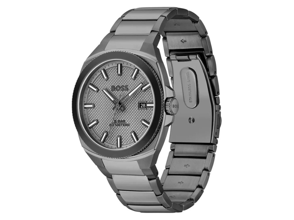 HODINKY BOSS MAN 1514137 (41MM). Typ mechanizmu: QUARTZ. Displej: HODINKY: ANALÓGOVÉ. Materiál puzdra: MATERIÁL: NEHRDZAVEJÚCA OCEĽ. Farba puzdra: FARBA PUZDRA: ŠEDÁ. Materiál náramku: MATERIÁL NÁRAMKU: NEHRDZAVEJÚCA OCEĽ. Farba náramku: FARBA NÁRAMKU: ŠEDÁ. Farba ciferníka: FARBA NÁRAMKU: ŠEDÁ. Typ skla: SKLÍČKO: MINERÁLNE. Sklo: BUTTERFLY. Priemer ciferníka: pRIEMER CIFERNÍKA: 41MM. Ponoriteľnosť: 5ATM