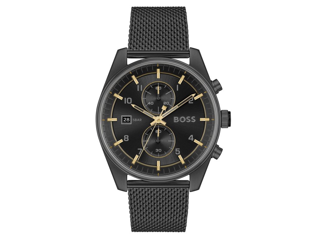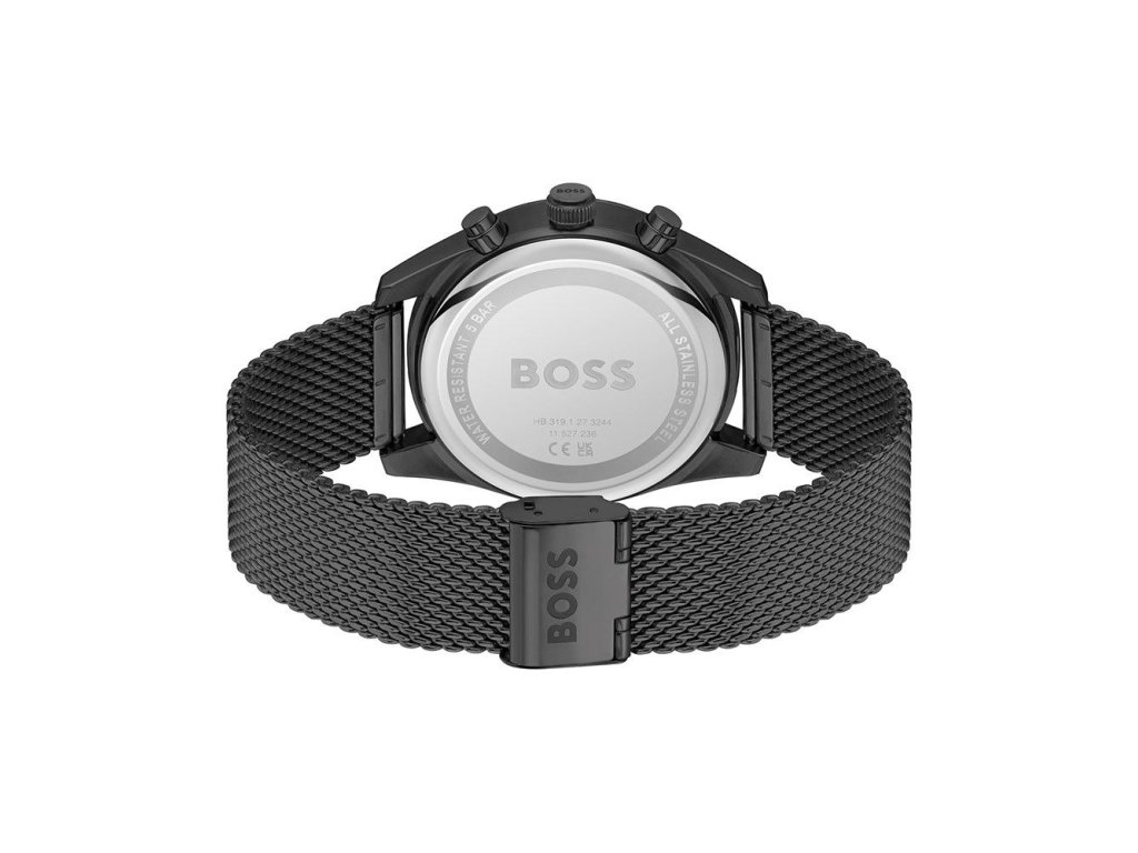 HODINKY BOSS MAN 1514150 (44MM). Typ mechanizmu: QUARTZ. Displej: HODINKY: ANALÓGOVÉ. Materiál puzdra: MATERIÁL: NEHRDZAVEJÚCA OCEĽ. Farba puzdra: FARBA PUZDRA: ČIERNA. Materiál náramku: MATERIÁL NÁRAMKU: NEHRDZAVEJÚCA OCEĽ. Farba náramku: FARBA NÁRAMKU: ČIERNA. Farba ciferníka: ČIERNA. Typ skla: MINERÁLNE. Clousure: HOOK. Priemer ciferníka: dĹŽKA CIFERNÍKA: 44MM. Ponorný: 5ATM