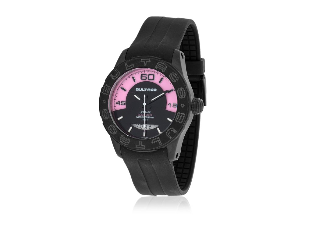 HODINKY BULTACO WOMAN H1AB43S-SS1 (43MM). Typ mechanizmu: QUARTZ. Displej: HODINKY: ANALOGICKÉ. Materiál puzdra: MATERIÁL PUZDRA: OCEĽ. Farba puzdra: FARBA PUZDRA: ČIERNA. Materiál náramku: MATERIÁL NÁRAMKU: GUMA. Farba náramku: FARBA NÁRAMKU: ČIERNA. Farba ciferníka: ČIERNA A RUŽOVÁ. Typ skla: . Kľučka: BUCKLE. Priemer ciferníka: dĹŽKA CIFERNÍKA: 43MM. Ponoriteľnosť: 10ATM