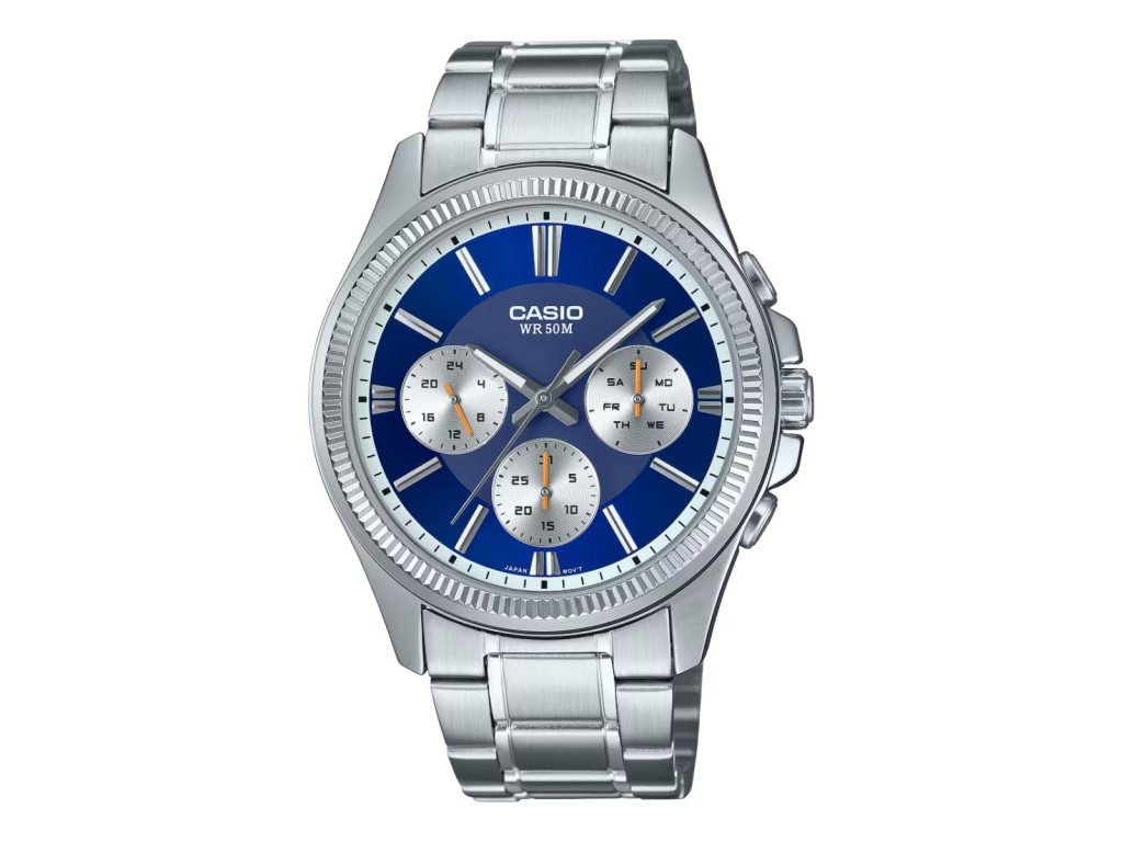 HODINKY CASIO MAN MTP1375D2A1VD (42MM). Typ mechanizmu: QUARTZ. Displej: TYP: ANALÓGOVÝ. Materiál puzdra: MATERIÁL: NEHRDZAVEJÚCA OCEĽ. Farba puzdra: FARBA PUZDRA: ŠEDÁ. Materiál náramku: MATERIÁL NÁRAMKU: NEHRDZAVEJÚCA OCEĽ. Farba náramku: FARBA NÁRAMKU: ŠEDÁ. Farba ciferníka: MODRÁ. Typ skla: SKLÍČKO: MINERÁLNE. Clousure: SKLENENÉ SKLO: FOLD-OUT. Priemer ciferníka: dĹŽKA CIFERNÍKA: 42MM. Ponorný: 5ATM
