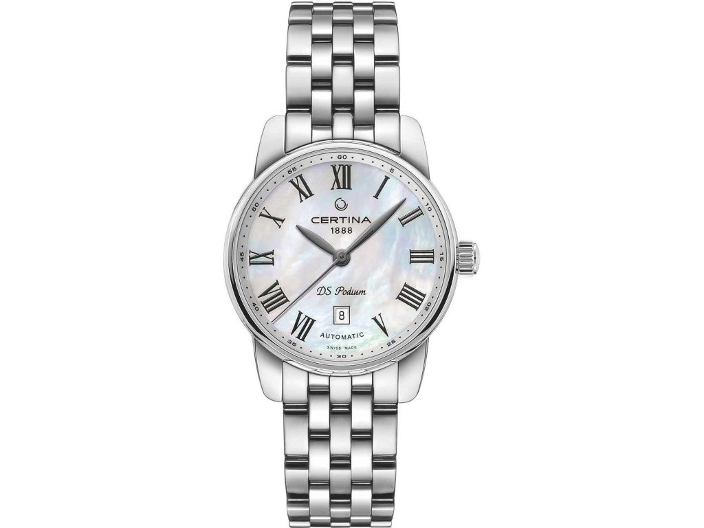 HODINKY CERTINA WOMAN C001007111130 (29MM). Typ mechanizmu: TYP HODINIEK: AUTOMATICKÉ. Displej: HODINKY: ANALOGICKÉ. Materiál puzdra: MATERIÁL: NEREZOVÁ OCEĽ. Farba puzdra: FARBA PUZDRA: ŠEDÁ. Materiál náramku: MATERIÁL NÁRAMKU: NEHRDZAVEJÚCA OCEĽ. Farba náramku: FARBA NÁRAMKU: ŠEDÁ. Farba ciferníka: BIELA. Typ skla: TYP SKLA: SAPPHIRE. Clousure: SKLENENÉ SKLO: PRESSURE. Priemer ciferníka: dĹŽKA CIFERNÍKA: 29 MM. Ponoriteľnosť: 10 ATM