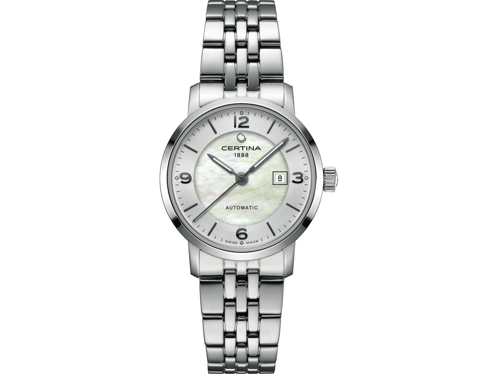 HODINKY CERTINA WOMAN C035007111170 (29MM). Typ mechanizmu: TYP HODINIEK: AUTOMATICKÉ. Displej: TYP: ANALÓGOVÝ. Materiál puzdra: MATERIÁL: NEREZOVÁ OCEĽ. Farba puzdra: FARBA PUZDRA: ŠEDÁ. Materiál náramku: MATERIÁL NÁRAMKU: NEHRDZAVEJÚCA OCEĽ. Farba náramku: FARBA NÁRAMKU: ŠEDÁ. Farba ciferníka: BIELA. Typ skla: TYP SKLA: SAPPHIRE. Clousure: SKLENENÉ SKLO: PRESSURE. Priemer ciferníka: dĹŽKA CIFERNÍKA: 29 MM. Ponoriteľnosť: 10 ATM