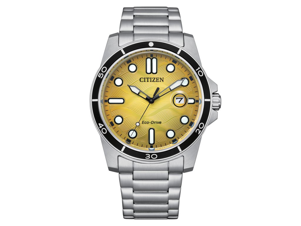 HODINKY CITIZEN MAN AW1816-89X (41,5MM). Typ mechanizmu: TYP HODINIEK: SOLAR. Displej: TYP: ANALÓGOVÝ. Materiál puzdra: MATERIÁL PUZDRA: NEHRDZAVEJÚCA OCEĽ. Farba puzdra: FARBA PUZDRA: ŠEDÁ. Materiál náramku: MATERIÁL NÁRAMKU: NEHRDZAVEJÚCA OCEĽ. Farba náramku: FARBA NÁRAMKU: ŠEDÁ. Farba ciferníka: ŽLTÁ. Typ skla: SKLÍČKO: MINERÁLNE. Clousure: TLAK. Priemer ciferníka: pRIEMER: 41,5 MM. Ponorný: 10ATM
