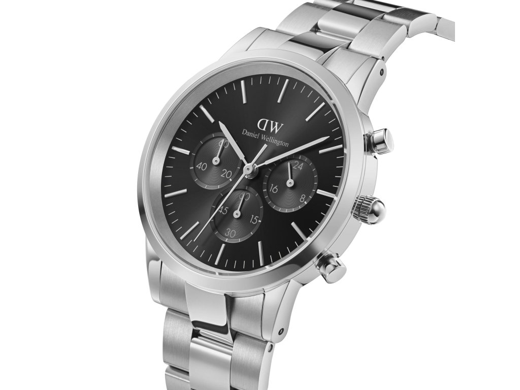 Módne chronografy s čiernym ciferníkom a strieborným kovovým remienkom, ktoré podčiarknu štýl a eleganciu každého muža. Puzdro hodiniek striebornej farby ukrýva 3 subciferníky na zobrazenie minút, sekúnd a hodín v 24-hodinovom formáte. Pre hodinkyDaniel Wellington je samozrejme presný quartzový (batériový) strojček a odolný minerálny kryštál.