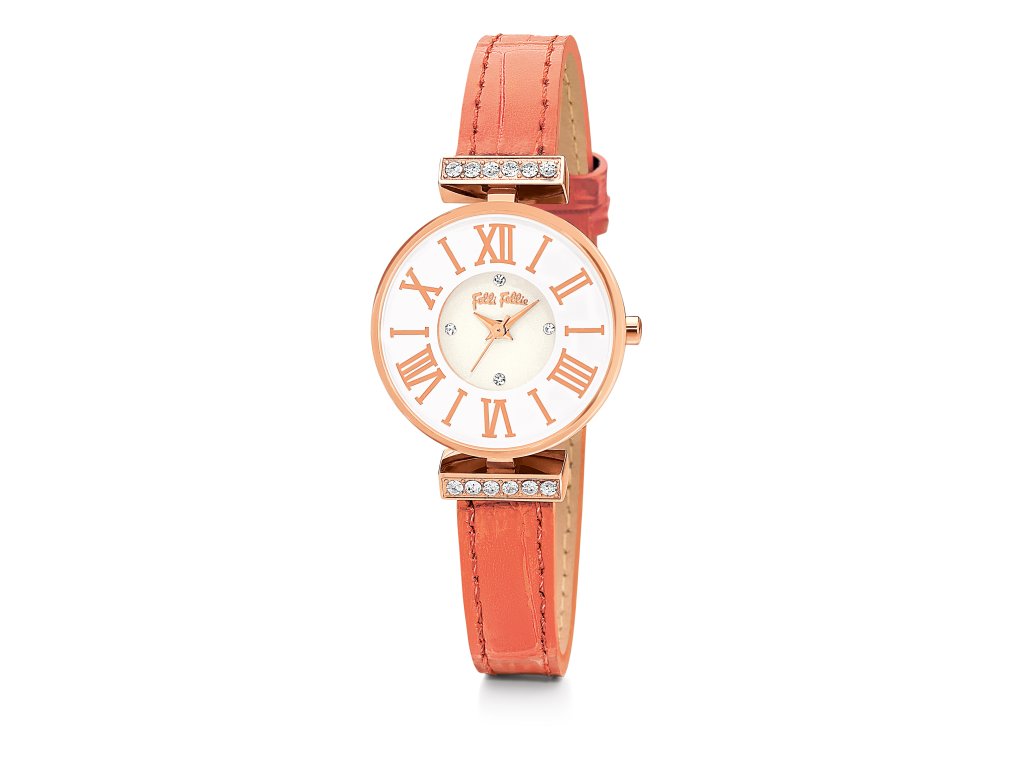 HODINKY FOLLI FOLLIE WOMAN WF13B014SSW (25MM). Typ mechanizmu: QUARTZ. Displej: DISPLEJ: ANALOGICKÝ. Materiál puzdra: MATERIÁL: NEHRDZAVEJÚCA OCEĽ. Farba puzdra: ZLATÁ. Materiál náramku: MATERIÁL NÁRAMKU: KOŽA. Farba náramku: FARBA NÁRAMKU: ORANŽOVÁ. Farba ciferníka: BIELA. Typ skla: SKLÍČKO: MINERÁLNE. Clousure: HEBILLA. Priemer ciferníka: dĹŽKA: 25 MM. Ponorný: NE