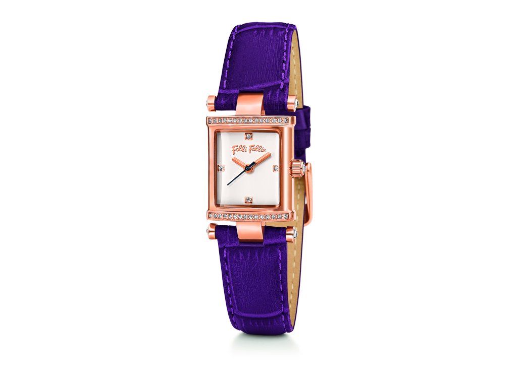 HODINKY FOLLI FOLLIE WOMAN WF13B037SSL (18MM). Typ mechanizmu: QUARTZ. Displej: DISPLEJ: ANALÓGOVÝ. Materiál puzdra: MATERIÁL: NEHRDZAVEJÚCA OCEĽ. Farba puzdra: ZLATÁ. Materiál náramku: MATERIÁL NÁRAMKU: KOŽA. Farba náramku: FARBA NÁRAMKU: VIOLETOVÁ. Farba ciferníka: BIELA. Typ skla: SKLÍČKO: MINERÁLNE. Clousure: HEBILLA. Priemer ciferníka: dĹŽKA HODINOVÉHO CIFERNÍKA: 18 MM. Ponorný: NE