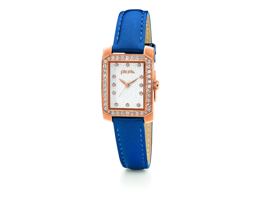 HODINKY FOLLI FOLLIE WOMAN WF13B053SSA (20MM). Typ mechanizmu: QUARTZ. Displej: DISPLEJ: ANALOGICKÝ. Materiál puzdra: MATERIÁL: NEHRDZAVEJÚCA OCEĽ. Farba puzdra: ZLATÁ. Materiál náramku: MATERIÁL NÁRAMKU: KOŽA. Farba náramku: FARBA NÁRAMKU: MODRÁ. Farba ciferníka: BIELA. Typ skla: SKLÍČKO: MINERÁLNE. Clousure: HEBILLA. Priemer ciferníka: 20MM. Ponorný: