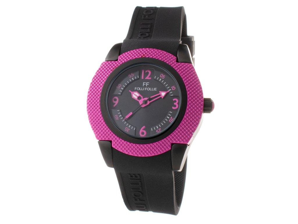 HODINKY FOLLI FOLLIE WOMAN WF13Y028ZPP (40MM). Typ mechanizmu: QUARTZ. Displej: DISPLEJ: ANALOGICKÝ. Materiál puzdra: MATERIÁL: NEHRDZAVEJÚCA OCEĽ. Farba puzdra: FARBA PUZDRA: RUŽOVÁ. Materiál náramku: MATERIÁL NÁRAMKU: SILIKÓN. Farba náramku: FARBA NÁRAMKU: ČIERNA. Farba ciferníka: ČIERNA. Typ skla: MINERÁLNE. Clousure: HEBILLA. Priemer ciferníka: dĹŽKA: 40 MM. Ponoriteľnosť: 5ATM