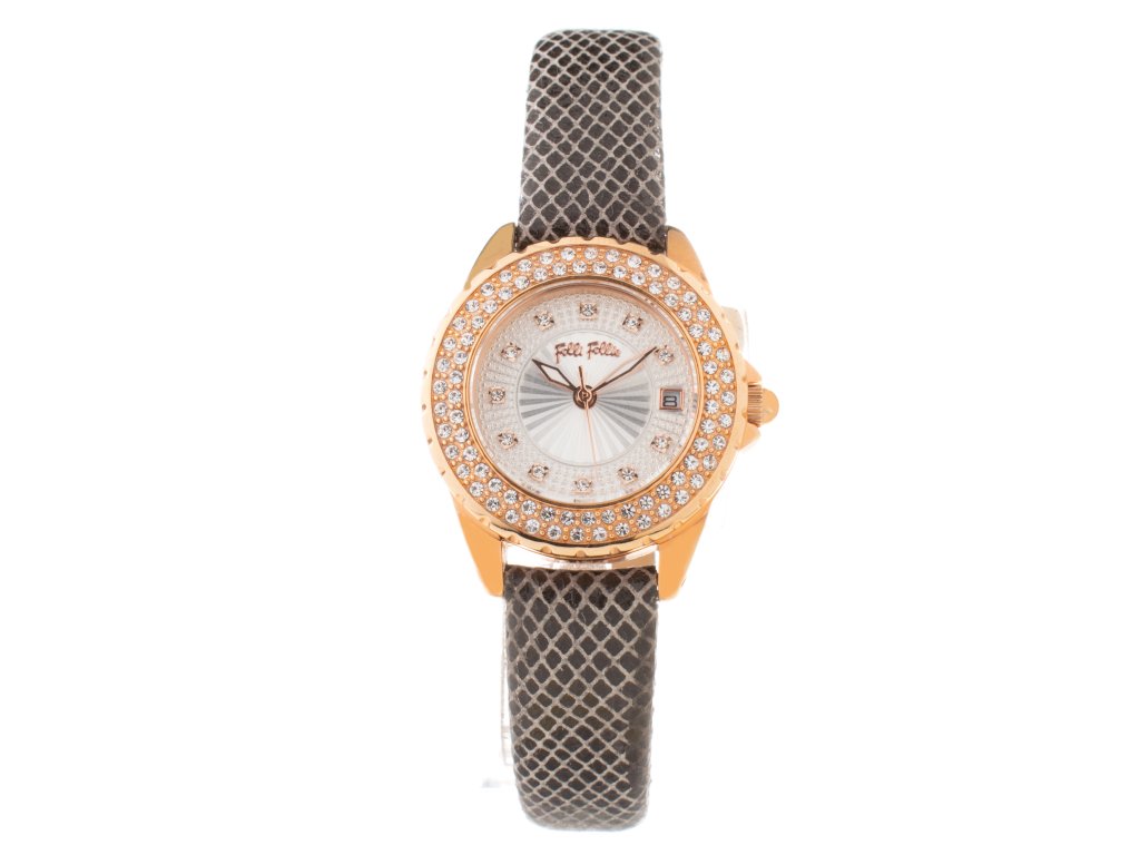 HODINKY FOLLI FOLLIE WOMAN WF1B006STM (30MM). Typ mechanizmu: QUARTZ. Displej: DISPLEJ: ANALÓGOVÝ. Materiál puzdra: MATERIÁL: NEHRDZAVEJÚCA OCEĽ. Farba puzdra: FARBA PUZDRA: ZLATÁ. Materiál náramku: MATERIÁL NÁRAMKU: KOŽA. Farba náramku: FARBA NÁRAMKU: ŠEDÁ. Farba ciferníka: FARBA CIFERNÍKA: ŠEDÁ. Typ skla: SKLÍČKO: MINERÁLNE. Kľučka: BUCKLE. Priemer ciferníka: dĹŽKA CIFERNÍKA: 30MM. Ponorný: