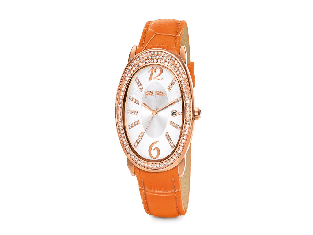 HODINKY FOLLI FOLLIE WOMAN WF2B012STWN (45MM). Typ mechanizmu: QUARTZ. Displej: TYP: ANALÓGOVÝ. Materiál puzdra: MATERIÁL: NEHRDZAVEJÚCA OCEĽ. Farba puzdra: ZLATÁ. Materiál náramku: MATERIÁL NÁRAMKU: KOŽA. Farba náramku: FARBA NÁRAMKU: ORANŽOVÁ. Farba ciferníka: BIELA. Typ skla: SKLÍČKO: MINERÁLNE. Clousure: HEBILLA. Priemer ciferníka: dĹŽKA HODINOVÉHO CIFERNÍKA: 45MM. Ponorný: