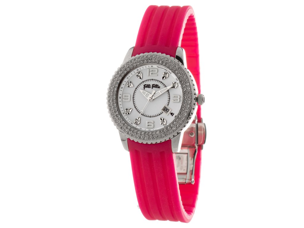 HODINKY FOLLI FOLLIE WOMAN WF5T003ZT (30MM). Typ mechanizmu: QUARTZ. Displej: DISPLEJ: ANALOGICKÝ. Materiál puzdra: MATERIÁL: NEHRDZAVEJÚCA OCEĽ. Farba puzdra: STRIEBORNÁ: FARBA PUZDRA: STRIEBORNÁ. Materiál náramku: MATERIÁL NÁRAMKU: PLAST. Farba náramku: FARBA NÁRAMKU: RUŽOVÁ. Farba ciferníka: BIELA. Typ skla: SKLÍČKO: MINERÁLNE. Clousure: HEBILLA. Priemer ciferníka: pRIEMER HODINOVÉHO CIFERNÍKA: 30MM. Ponorný: NE