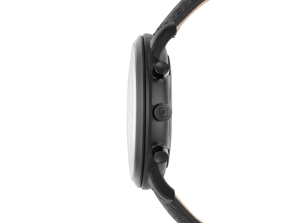 FS5503 je vybavenýčierny kožený remienok, okrúhle čierne oceľové puzdro a čierny ciferník s priemerom 44 mm. Praktickosť hodiniek podčiarkuje funkčný chronograf a ukazovateľ dátumu. Celok je chránený minerálnym sklíčkom a poháňaný spoľahlivým strojčekom Quartz.
