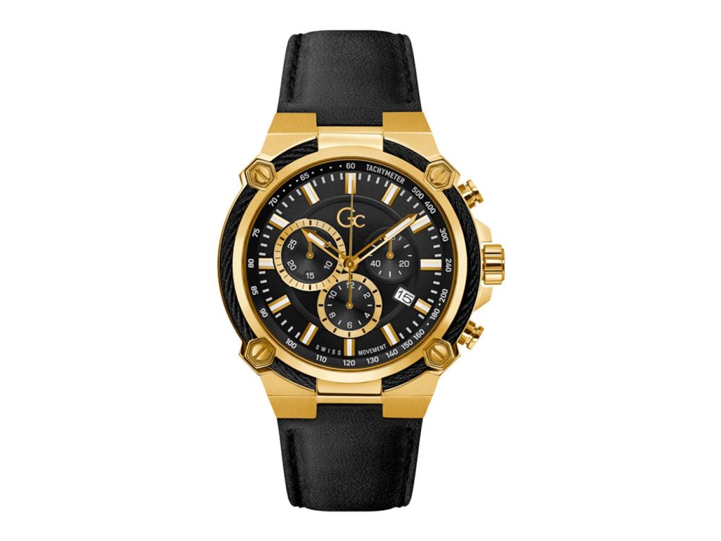 HODINKY GC MAN Y24011G2MF (44MM). Typ mechanizmu: QUARTZ. Displej: DISPLEJ: ANALOGICKÝ. Materiál puzdra: MATERIÁL: NEHRDZAVEJÚCA OCEĽ. Farba puzdra: FARBA: ZLATÁ. Materiál náramku: MATERIÁL NÁRAMKU: KOŽA. Farba náramku: FARBA NÁRAMKU: ČIERNA. Farba ciferníka: ČIERNA. Typ skla: SKLÍČKO: SAPPHIRE. Kľučka: BUCKLE. Priemer ciferníka: dĹŽKA CIFERNÍKA: 44MM. Ponorný: 10ATM