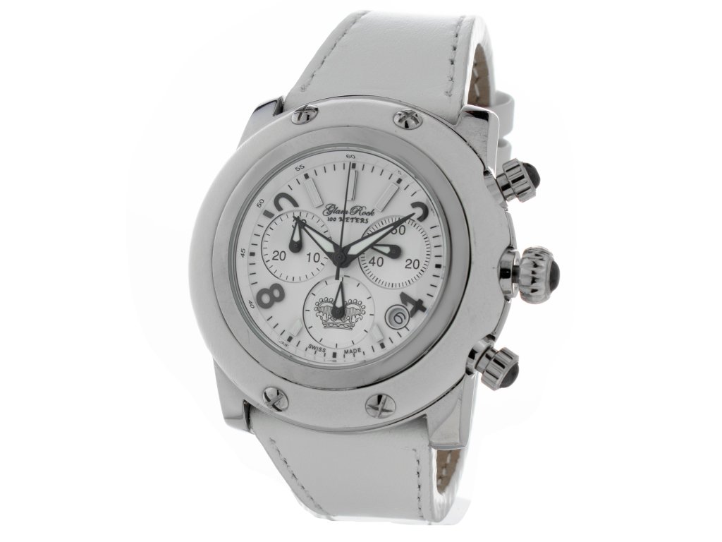 HODINKY GLAM ROCK WOMAN GR10101W (46MM). Typ mechanizmu: ŠVAJČIARSKY OKRÚHLY QUARTZ. Displej: HODINKY: ANALÓGOVÉ. Materiál puzdra: MATERIÁL PUZDRA: OCEĽ. Farba puzdra: STRIEBORNÁ: FARBA PUZDRA: STRIEBORNÁ. Materiál náramku: MATERIÁL NÁRAMKU: KOŽA. Farba náramku: FARBA NÁRAMKU: ČIERNA. Farba ciferníka: BIELA. Typ skla: SKLÍČKO: SAPPHIRE. Clousure: HEBILLA. Priemer ciferníka: dĹŽKA CIFERNÍKA: 46MM. Ponorný: 10ATM