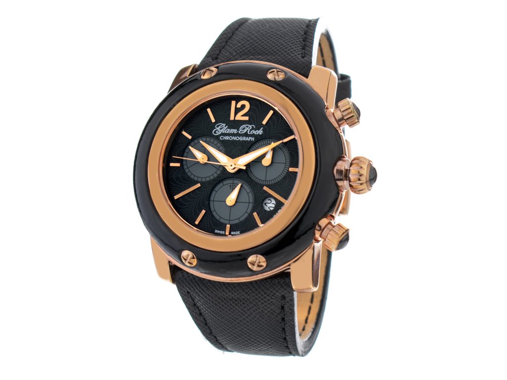 HODINKY GLAM ROCK WOMAN GR10143 (46MM). Typ mechanizmu: ŠVAJČIARSKY OKRÚHLY QUARTZ. Displej: HODINKY: ANALÓGOVÉ. Materiál puzdra: MATERIÁL PUZDRA: OCEĽ. Farba puzdra: FARBA PUZDRA: ZLATÁ. Materiál náramku: MATERIÁL NÁRAMKU: KOŽA. Farba náramku: FARBA NÁRAMKU: ČIERNA. Farba ciferníka: ČIERNA. Typ skla: SKLÍČKO: SAPPHIRE. Kľúč: HEBILLA. Priemer ciferníka: dĹŽKA CIFERNÍKA: 46MM. Ponorný: 10ATM
