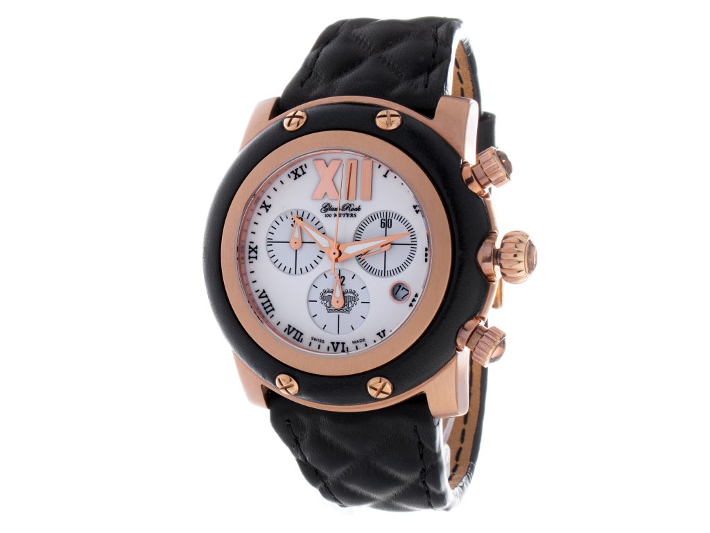 HODINKY GLAM ROCK WOMAN GR11133 (46MM). Typ mechanizmu: QUARTZOVÉ HODINKY ŠVAJČIARSKEJ VÝROBY. Displej: HODINKY: ANALÓGOVÉ. Materiál puzdra: MATERIÁL PUZDRA: OCEĽ. Farba puzdra: ZLATÁ. Materiál náramku: MATERIÁL NÁRAMKU: KOŽA. Farba náramku: FARBA NÁRAMKU: ČIERNA. Farba ciferníka: BIELA. Typ skla: SKLÍČKO: SAPPHIRE. Kľučka: BUCKLE. Priemer ciferníka: dĹŽKA CIFERNÍKA: 46MM. Ponorný: 10ATM