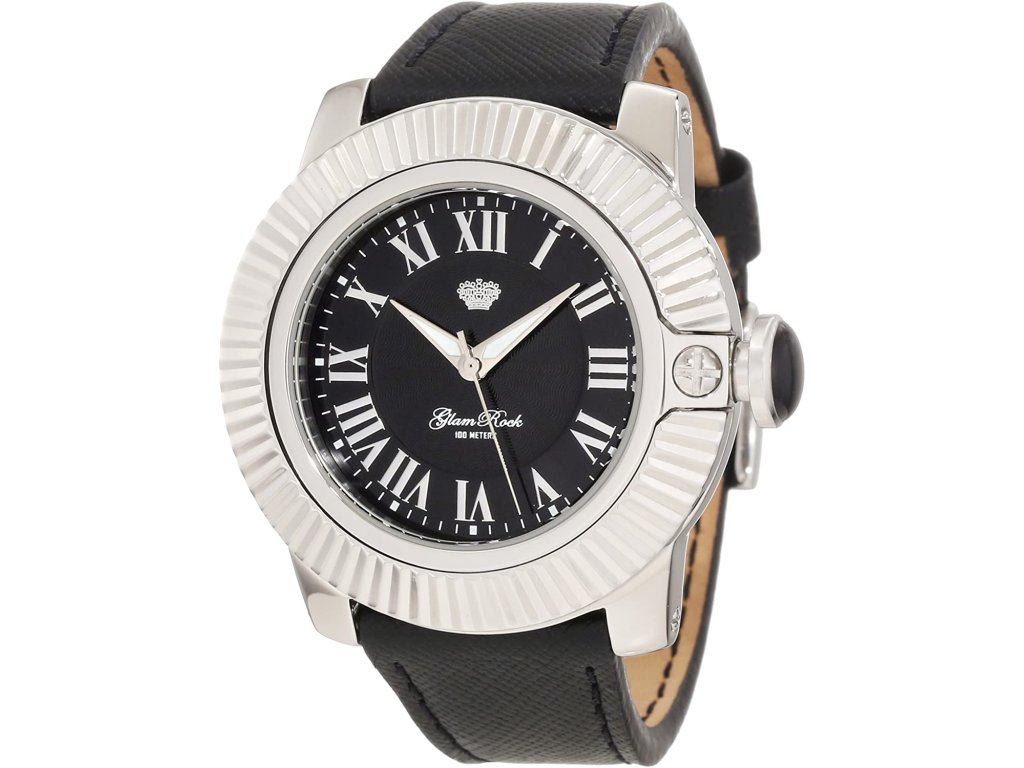 HODINKY GLAM ROCK WOMAN GR32020 (44MM). Typ mechanizmu: QUARTZOVÝ OKRÚHLY ŠVAJČIARSKY VYROBENÝ. Displej: HODINKY: ANALÓGOVÉ. Materiál puzdra: MATERIÁL PUZDRA: OCEĽ. Farba puzdra: STRIEBORNÁ: FARBA PUZDRA: STRIEBORNÁ. Materiál náramku: MATERIÁL NÁRAMKU: KOŽA. Farba náramku: FARBA NÁRAMKU: ČIERNA. Farba ciferníka: ČIERNA. Typ skla: SKLÍČKO: SAPPHIRE. Kľučka: BUCKLE. Priemer ciferníka: dĹŽKA CIFERNÍKA: 44MM. Ponorný: 10ATM
